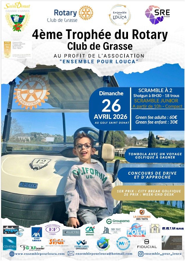 Quatrième édition du Tournoi de golf du Rotary Grasse le dimanche 26 avril 2026 au Golf de Saint-Donat au profit de Louca.
