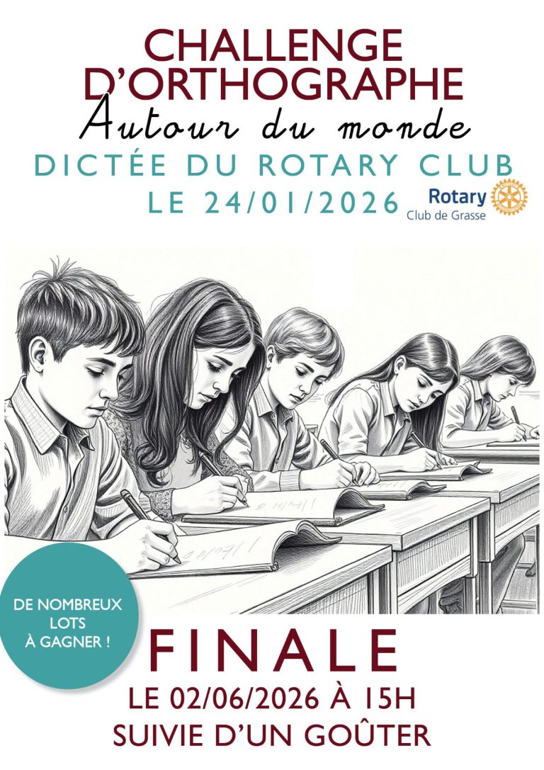 La 2ème édition du Challenge de l'orthographe "Autour du monde " est en cours et la grande finale aura lieu le mardi 2 juin 2026 à 15 h à l'Institut Fénelon et sera suivie d'un goûter offert par le club et Fénelon.